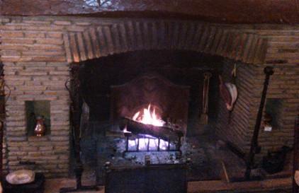 (Tout le monde se blottit près du feu vif comme un feu de joie, et dans chaque âtre allumé, flambe la bûche de Noël.)