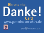 Les personnes qui donnent gracieusement de leur temps, ?uvrent bénévolement dans une ou plusieurs fondations, organisations ou associations et permettent par leur engagement civique et leur comportement citoyen, à des projets associatifs de voir le jour ? que ceux-ci soient de nature sociale, humanitaire, ou encore écologique,?vont pouvoir se réjouir. La ville de Francfort souhaite récompenser d'ici fin avril 2014, 1000 bénévoles particulièrement méritants en leur octroyant la ?Danke-Karte?, une sorte de ?sésame ouvre-toi? valable à Francfort mais aussi dans l'ensemble de la Hesse !