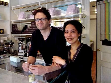 Pour Maylynn, être nichée dans une ruelle piétonne où les voitures sont interdites évoque déjà Paris. "On attire pas mal de Français, en fait. Ce produit leur manquait." Comme Joséphine, elle confirme Maylynn est son mari dans leur boutique de macarons, photo Mia Tampano qu'autrefois on ne pouvait pas trouver de bons macarons ici. "Pas comme à Paris."