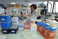 Une technicienne le 27 octobre 2004 dans le laboratoire Généthon à Evry, financé par l'Association Française contre les Myopathies (photo AFP)