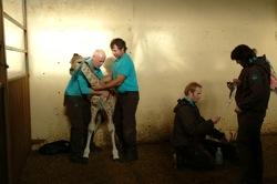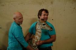 Si l'événement a suscité l'enthousiasme, il faut reconnaître que tout ne se passe pas au mieux pour le petit girafon (femelle) de Kristiansand. Le contact avec la mère ne s'est pas fait et la lactation est depuis un véritable problème. Toutes les tailles et formes de tétine ont été testées pour pousser le jeune animal à s'alimenter par biberon et des calmants administrés à la mère pour pacifier son attitude. Mais sans réel succès. Si le girafon a finalement pu s'approcher, il n'a pas montré de volonté particulière de prendre le lait de sa mère. Face à cette situation, il a été décidé dimanche de l'isoler pour lui procurer davantage de calme. Pour l'heure, tubes et intraveineuses assurent l'essentiel.Thierry GUENIN (www.lepetitjournal.com Oslo) lundi 3 novembre 2008