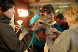 Depuis la naissance, les soigneurs et le personnel du parc veillent à la santé du girafon - Photos : Kristiansand Dyreparken