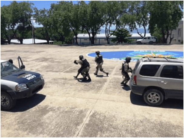 Dispensée du 13 au 25 juin 2016 par deux formateurs du Groupe d'Intervention de la Police Nationale (GIPN) Antilles-Guyane basé en Guadeloupe, cette formation qualifiante a été suivie par la totalité des agents de la Brigade de Recherches et d'Intervention (BRI) de la DCPJ haïtienne, mais aussi par quelques agents du Bureau de Lutte contre le Trafic de Stupéfiants (BLTS), soit en tout 54 agents spécialisés dans le domaine de l'intervention.