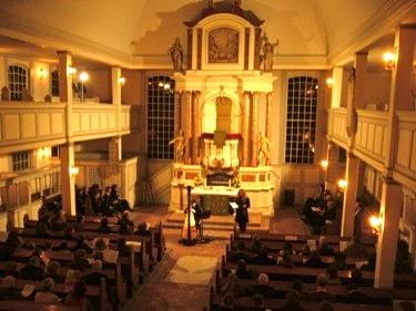 Le festival Arabesques proposait vendredi soir sa soirée romantique et musicale dans le cadre intimiste de la Nienstedtener Kirche de Hambourg. Sous les voûtes blanches de cette église à deux étages, les 15 choristes de l'ensemble Voix de Femmes du Lycée Français ? toutes de noir vêtues - ont exploré un répertoire du XIXème siècle. Aux commandes, le chef de c?ur franco-hambourgeois Rémi Laversanne n'a pas caché son plaisir et sa "fierté" de voir ces femmes chanter ensemble. De Berlioz à Debussy en passant par Brahms, elles ont donné un concert sobrement délicat, à l'image de la harpe d'Isabel Moreton qui les a accompagnées tout au long de la représentation. Plus tard dans la soirée, deux cors sont venus se joindre à l'ensemble vocal.