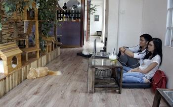 En pleine mousson, une activité d'intérieur originale consiste à se rendre dans un de ces cafés-animaliers qui font actuellement fureur auprès des jeunes vietnamiens. Le café animalier est un concept qui a vu le jour au Japon et qui permet d'associer le plaisir de partager une tasse de café entre amis tout en prenant soin d'animaux de compagnie mis à disposition sur place.