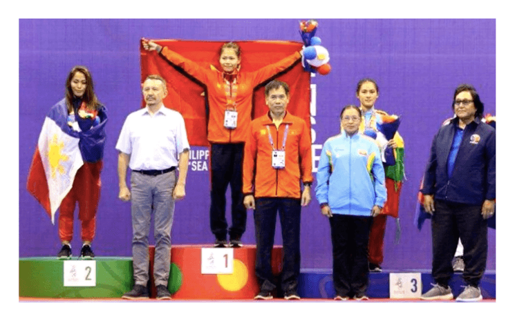 Enfin, les 3 dernières médailles d’or pour compléter ce top 10 ont été remises à Vũ Thị Thanh Bình Nguyễn (catégorie poids plume), Thị Cẩm Nhi (catégorie poids welters) et Đào Thị Hồng Nhung (poids léger) en arnis, escrime national philippin, face à 3 pays concurrents : Philippines, Myanmar et Cambodge.