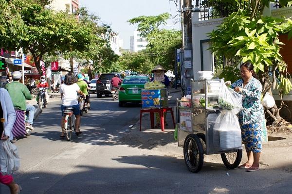 Même si les constructions à tout va poussent comme des champignons, on y trouve encore de l'authentique. Il suffit de se balader sur Quoc Huong pour aller faire ses courses. On se retrouve au c?ur du Vietnam. Fruits et légumes de saison, fleurs de toutes les couleurs, réparateur de fermeture éclair, de scooter, pharmacies, photocopies à des prix défiant toute concurrence, coiffeurs, pagodes, couturières, articles en tout genre, décorations du Têt ou de Noël (en saison), karaokés,... La liste est infinie! Et le soir! A peine la nuit commence-t-elle à tomber que les petites chaises sortent avec leurs vendeurs de saveurs! J'adore ces délicieuses odeurs de brochettes grillées, de poissons, de plats typiques qui envahissent la rue. L'ambiance y est plus à la fête. Ca tchatche, ça rigole, on prend son temps.