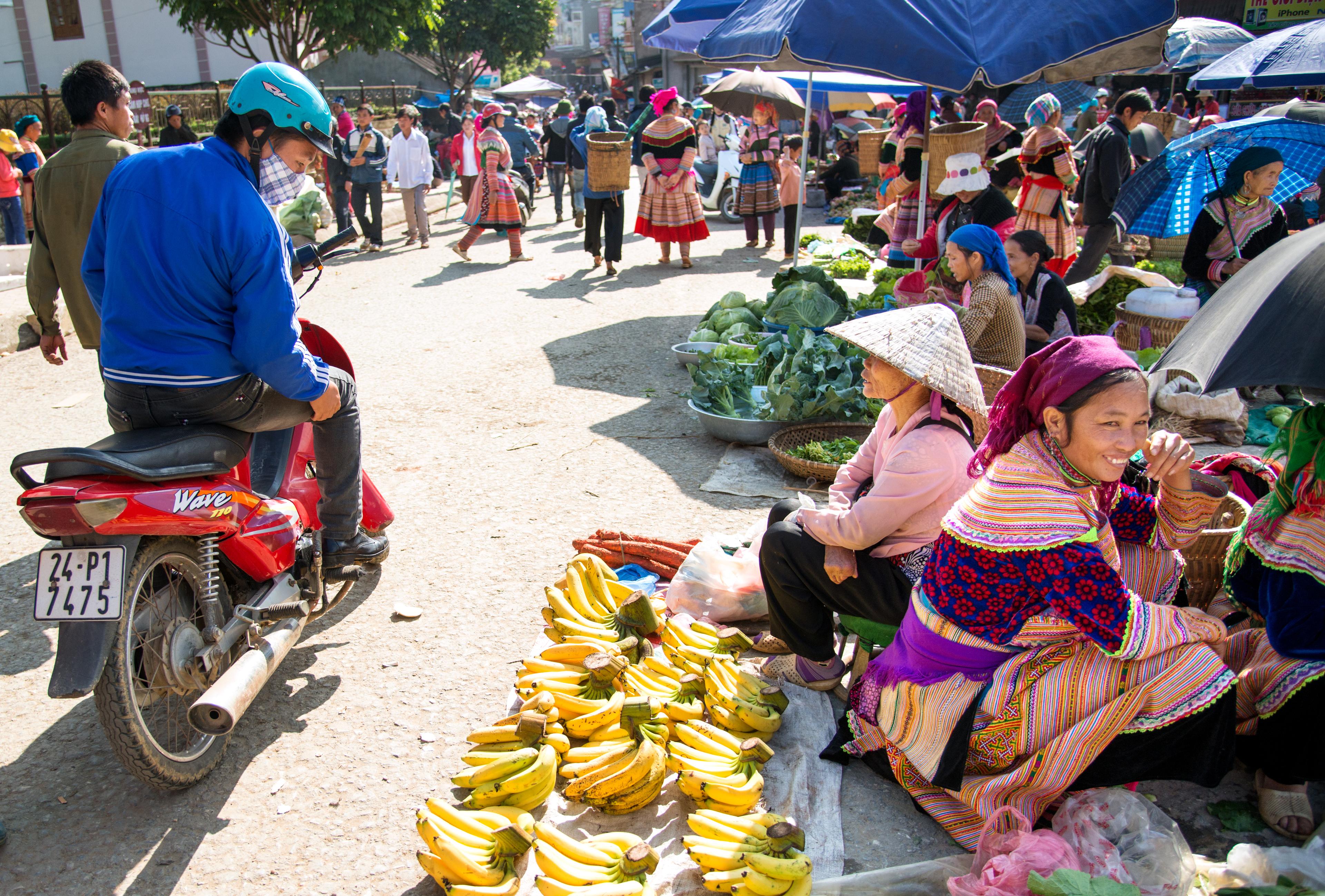 Vous l’aurez remarqué, on se sent si minuscule lorsqu’on voit ces montagnes imposantes et rizières à perte de vue ! Il serait dommage d’en perdre ne serait-ce qu’une miette. Plutôt que de payer un guide, préférez louer un scooter, qui vous offrira une plus grande liberté. Explorez les routes escarpées (prudence quand même) comme si vous étiez le roi du monde, et visitez les marchés locaux, situés à plus de 2h de route de Sa Pa. Là-bas, vous croiserez les Hmongs ainsi que d’autres ethnies principalement issues du Sud de la Chine. Elles sont reconnaissables grâce à leurs vêtements aux couleurs chatoyantes. Très pauvres, elles subsistent grâce au tourisme et leur artisanat. Passé le cap commercial, vous pourrez aisément entrer en contact avec eux : très sociables et parlant l’anglais, certains n’hésiteront pas à vous ouvrir leurs portes. Des moments chez l’habitant sont souvent inestimables.