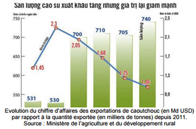 Au cours des neuf premiers mois de l'année 2015, le Vietnam a perdu 1,76 Md USD en exportant quelque 740 000 tonnes de caoutchouc, en raison de la baisse des prix.