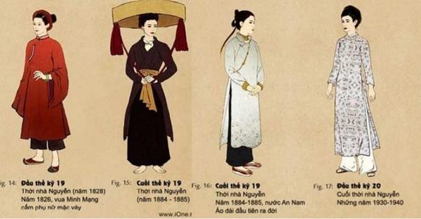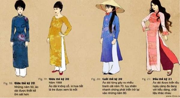 Au XVIIème siècle, l'ao dai consistait en une veste longue portée en cache-coeur par-dessus un dos-nu. Par la suite, elle était cousue à partir de 4 ou 5 pans de tissu. L'évolution la plus marquante intervient en 1939 avec la création de l'ao dai dit « le mur » par le peintre Cat Tuong. Mélange de styles asiatiques et européen, la tenue était portée près du corps avec des manches bouffantes.