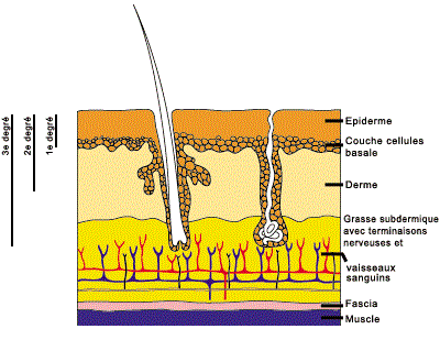 Ensuite, on distingue différents degrés de brûlure, en fonction de leur profondeur et de leur traitement.