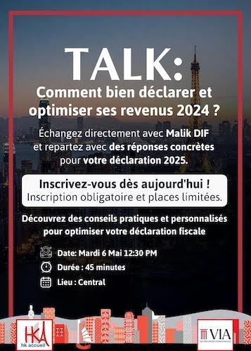 Préparez efficacement votre déclaration fiscale en participant au Talk du mardi 6 mai prochain organisé en partenariat avec Hong Kong Accueil.
