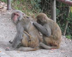 Comment dans une ville ayant une telle densité urbaine peut-il encore y avoir des animaux sauvages ? A l'instar des vaches de Sai Kung, des sangliers ou autres porc-épics, des singes, des macaques en l'occurrence, semblent vivre en harmonie avec un environnent pourtant largement façonné par l'homme. Les zoologistes s'accordent à dire que les singes avaient disparu du territoire hongkongais avant le XIXème siècle et qu'ils ont été réintroduits par l'homme autour de 1915. Aujourd'hui, Il y aurait environ 1.200 Reshus Macaques à Hong Kong, résidant principalement sur les hauteurs de Kowloon dans les Country Parks de Kan Shan et du Lion Rock.