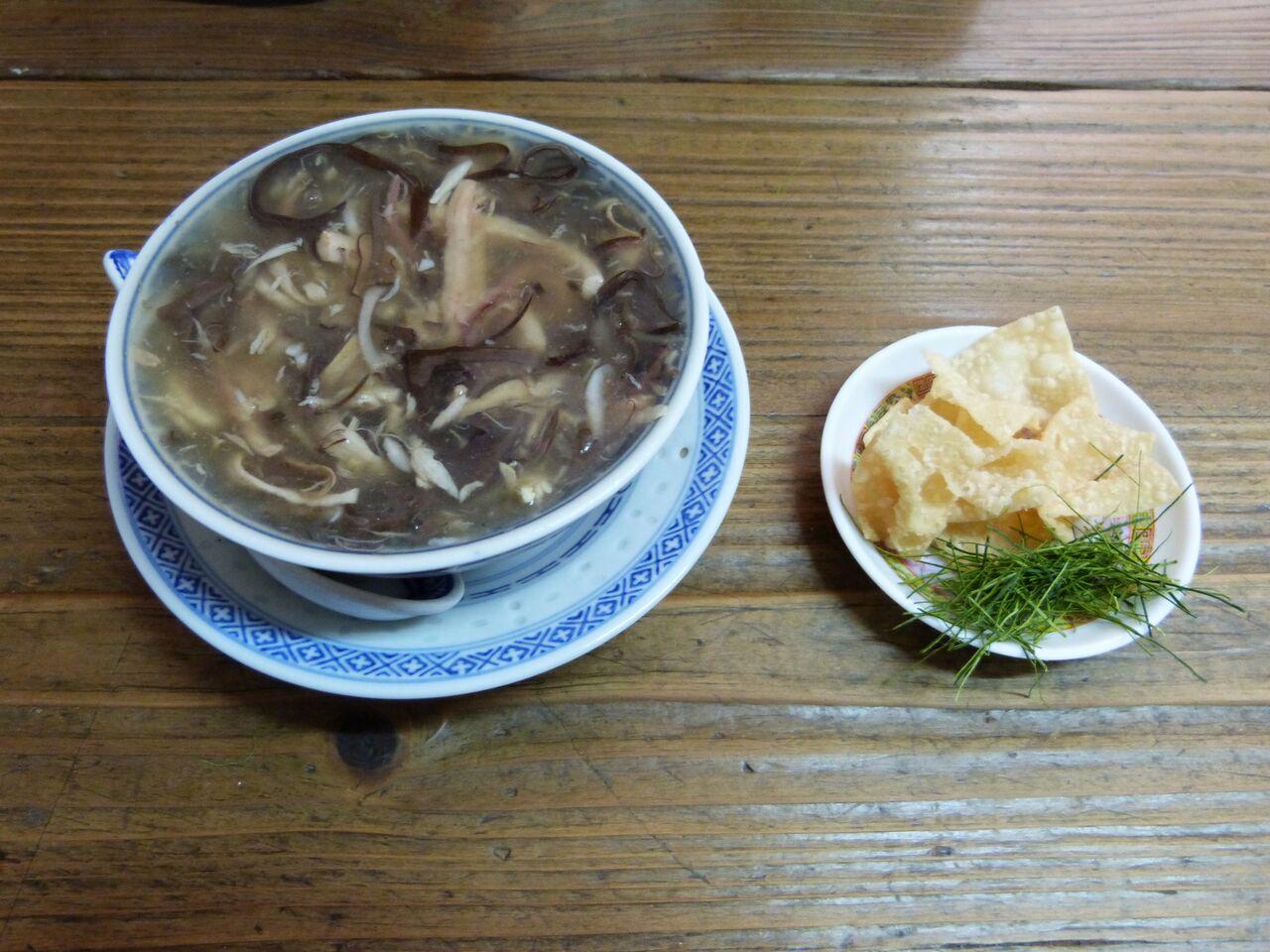 Dans la culture chinoise, la soupe de serpents est un plat hivernal qui « réchauffe le corps », censé préserver de la grippe, des rhumes et de toutes les agressions du froid sur notre organisme. Elle se présente en un bouillon épais où nagent des champignons noirs et de nombreux tronçons de chair blanche. Plusieurs espèces y sont mélangées, dont certaines venimeuses comme le cobra. La soupe est servie avec des morceaux de pâte frite, sortes de crackers, et des feuilles de citronnier qui relèvent agréablement le goût délicat du bouillon. La chair du serpent s'apparente à celle du poulet, et passée une certaine appréhension, sa dégustation s'avère savoureuse.
