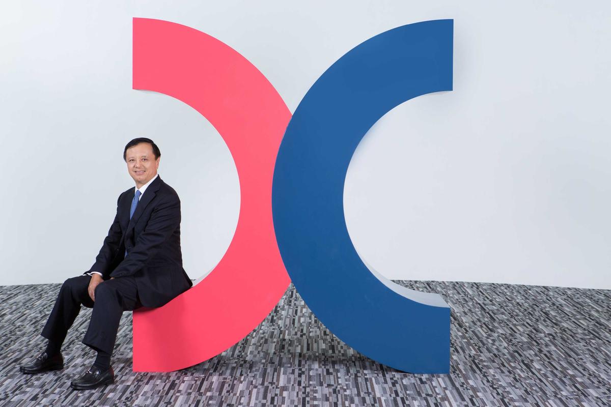 Charles Li, patron de HKex, posant avec le nouveau logo de la Bourse de Hong Kong