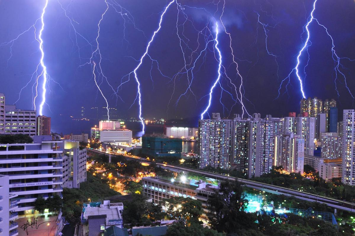 Plus de 10 000 éclairs ont illuminé le ciel de Hong Kong samedi soir. Un chiffre impressionant qui n'a cependant pas réussi à battre le record d'éclairs enregistrés en 24 heures établi en Belgique en 2005. 60 000 éclairs étaient alors tombés sur le pays.