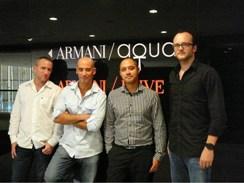 L'équipe de DJs du groupe Aqua au complet. De gauche à droite : Olivier Velay, DJ Fudge, Hallex M, Abel Rogers.