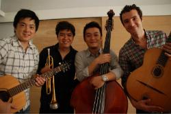 Felix (guitare rythmique), Hey (trompette), Tak Chung (contrebasse) et Antoine (guitare solo), la musique et les copains d'abord ...