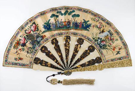 Eventail chinois en ivoire et carapace de tortue fabriqué pour l'export Canton vers 1860