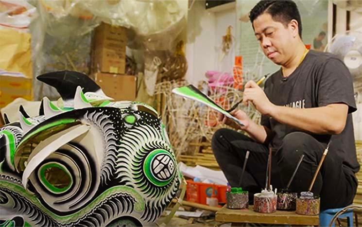 Pour que cette tradition puisse se poursuivre, une autre tradition est nécessaire : il faut créer le costume du lion, dont la pièce maitresse est la tête. Pour cela, le savoir-faire millénaire de ceux qui s’entraînent à ce métier depuis des années est indispensable.