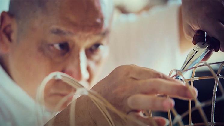 Les mains adroites du sifu (maître-artisan) s’appliquent à relier les tiges de bambou qu’il renforce avec de la gaze. Il s’affaire une douzaine d’heures avant que l’armature ne prenne forme. Il ajoute de couches de papier mâché qu’il peint soigneusement, puis il agrémente et peaufine le tout avec les derniers détails : la tête de lion est prête.