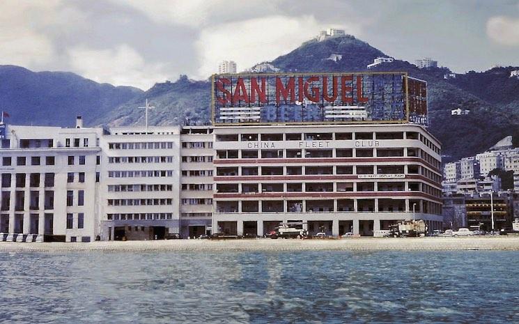 Si l’on revient près du front de mer, c’est le China Fleet Club qui a longtemps accueilli les marins des navires arrivant à Hong Kong, complexe de divertissement comprenant un restaurant, un cinéma, un bowling et surtout son bar qui draine les habitués. L’enseigne lumineuse géante pour la bière San Miguel sur la façade donnait d’ailleurs le ton. Le jeune Martin Booth de “Gweilo, une enfance hongkongaise” en parle puisque son père, qui travaillait pour la British Navy, était accessoirement abonné à la bouteille. Ce lieu de mémoire sera détruit en 1982.