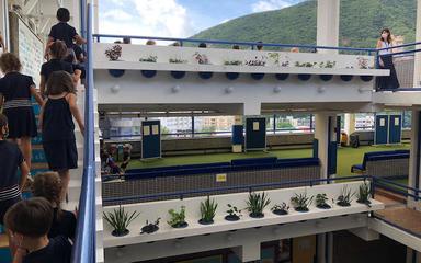Marceau: J’aimerais bien que mon école ait un balcon! Les récréations sont toujours par terre, moi je voudrais voir dehors.