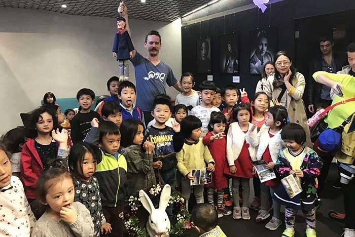 Plus tard, Martin fait des stages pour enfants afin qu’ils découvrent le monde de la marionnette. Dans le but d’un échange entre cultures, il fait jouer les enfants francophones en chinois et les enfants chinois en français. Après avoir participé au premier festival international de la marionnette à Pékin, il est invité à donner des cours à l’Académie centrale des arts dramatiques, malheureusement le Covid s’en mêle et le projet tombe à l’eau.
