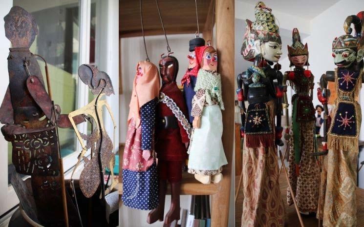 Martin m’accueille dans sa maison aux allures de musée de la marionnette. Bien qu’il ait dû se séparer temporairement d’une quarantaine de marionnettes, sa famille vit entourée de figurines venues des quatre coins du monde : Guignols de Lyon, Wayang Golek d’Indonésie, Chú Tễu du Vietnam… Chaque voyage est une bonne excuse pour aller à leur recherche et chaque trouvaille a une place dans un coin de la maison. De tailles, origines et matériaux différents, toutes les marionnettes témoignent de cette passion familiale qui gravite autour de Martin.