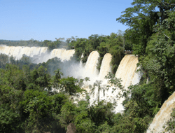 Encadrées par une riche végétation tropicale, les chutes d'Iguaçu offrent un panorama inimaginable de cascades à perte de vue. Très bien aménagées, elles permettent au visiteur de profiter pleinement du lieu, et ce avec deux grands points de vue.