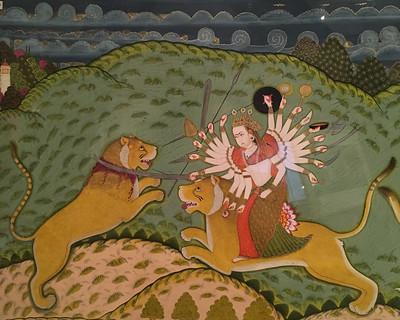 La déesse Durga est l'une des divinités les plus vénérées par les croyants hindous. Elle est considérée comme un symbole de force, de protection, de courage, de destruction et de maternité. Dans presque tous ses portraits, la déesse Durga est représentée chevauchant un lion.