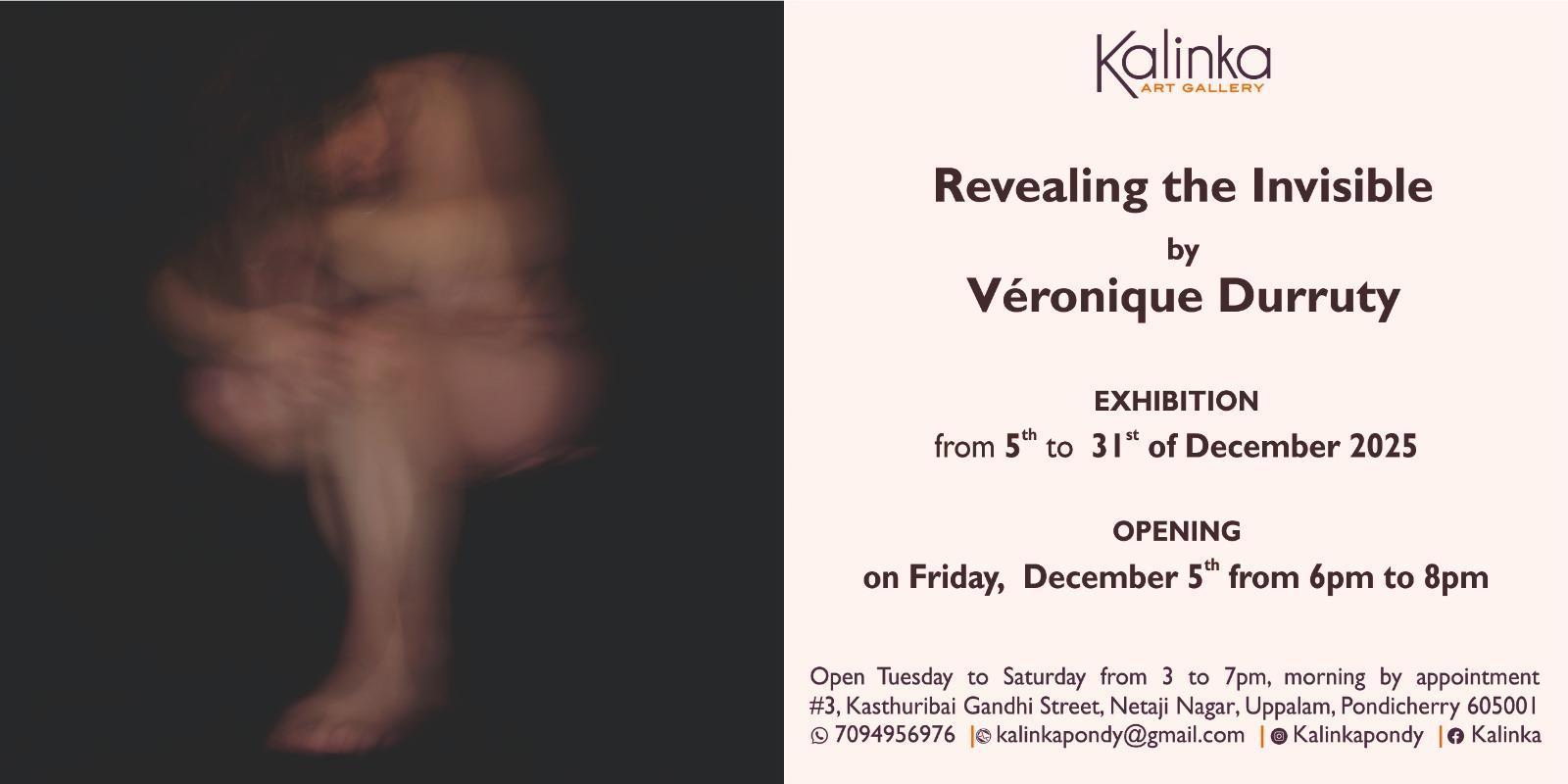 Du 5 au 31 décembre 2025, l'artiste multimédias Véronique Durruty présente ses créations dans une exposition intitulée « Revealing the Invisible » à la galerie Kalinka de Pondichéry.