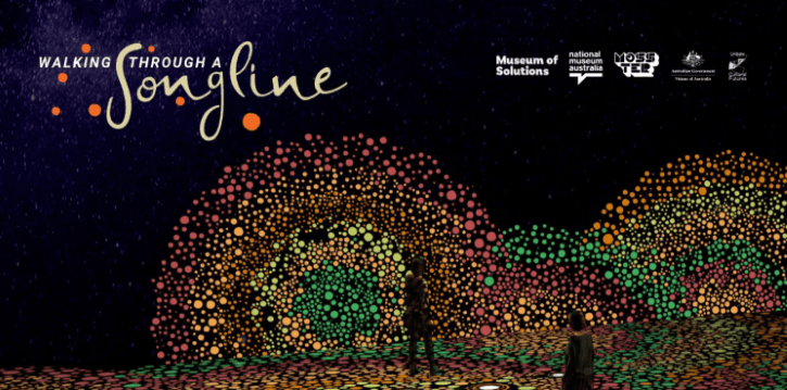 Walking through a Songline est une expérience numérique éphémère basée sur une partie de l'exposition de renommée internationale Songlines: Tracking the Seven Sisters du Musée national d'Australie. Les visiteurs se frayent un chemin à travers des projections époustouflantes qui montrent une chanson de manière artistique et saisissante. Il s'agit d'une expérience immersive à la croisée des connaissances anciennes et des nouvelles technologies.