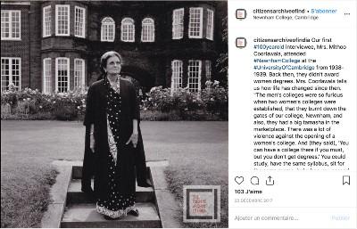 Il y en a tellement, il est difficile de choisir. Mithoo Coorlawala, femme de 102 ans aujourd’hui, m’a touchée. Elle s’est rendue, plus de 60 ans après ses études à l’université de Cambridge, à la cérémonie de remise de diplôme. A l’époque, les femmes pouvaient étudier, mais ne pouvaient pas être diplômées.