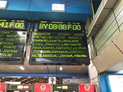 Sur la Western line, dans le sens sud-nord à la gare de Churchgate par exemple, les rames sont signalées ainsi :