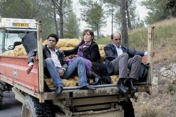 Agnès Jaoui est venue seule à Berlin assurer la promo de son dernier film ?Parlez-moi de la pluie?. Mais le compagnon Bacri n'est pas loin. Une fois de plus il co-signe le scénario et joue dans cette comédie douce-amère comme une pluie d'été. Pour son troisième film en tant que réalisatrice, Agnès Jaoui se penche sur des vies ordinaires qui se croisent un été dans le Sud de la France. Agathe Villanova (Agnès Jaoui), féministe fraîchement entrée en politique, revient dans la maison familiale. Elle y retrouve sa soeur (Pascale Arbillot), l'éternelle mal-aimée, croise le chemin de Karim (Jamel Debbouze), le fils de la femme de ménage et réceptionniste d'hôtel, et Michel (Jean-Pierre Bacri), journaliste raté qui se met en tête de faire un documentaire sur elle. C'est joué avec naturel et talent. C'est drôle, burlesque, et tendre. Un film qui a des choses à nous dire sur le racisme ordinaire, le féminisme, la famille. Agnès Jaoui aussi.