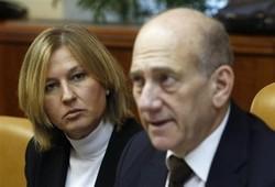 Tzipi Livni et Ehud Olmert, membres du même parti, ces deux-là ne se font pas de cadeau (photo AFP)