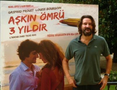 Sorti en janvier en France, L'Amour dure trois ans (A?k?n Ömrü Üç Y?ld?r en turc), le film tiré du roman de Frédéric Beigbeder, a rencontré un beau succès avec près de 700.000 entrées. Le public turc pourra se faire sa propre opinion à partir de vendredi dans les salles obscures d'Istanbul, Ankara et Izmir. L'écrivain-réalisateur était à Istanbul hier pour une conférence de presse organisée au Palais de France en présence du producteur du film, Michael Gentile, et de l'Ambassadeur de France en Turquie, Laurent Bili