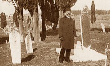 Néanmoins, après avoir traversé la route, entrez dans la partie ancienne du cimetière (eski mezarl?k) qui fait face à la Porte du canon, descendez l'allée principale jusqu'à la première allée à droite au niveau de ?'Cadde 2'' puis parcourez les 40 mètres qui conduisent à un vieux et grand cyprès.