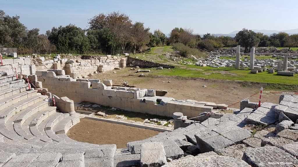 Vue sur l'agora de Teos du haut des gradins du bouleutérion