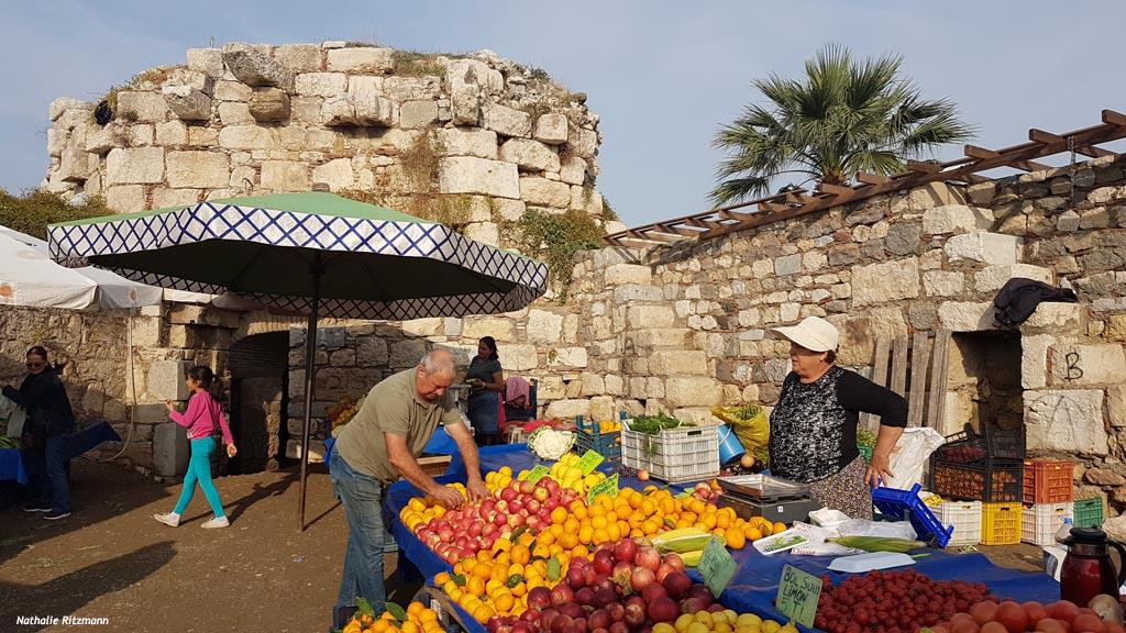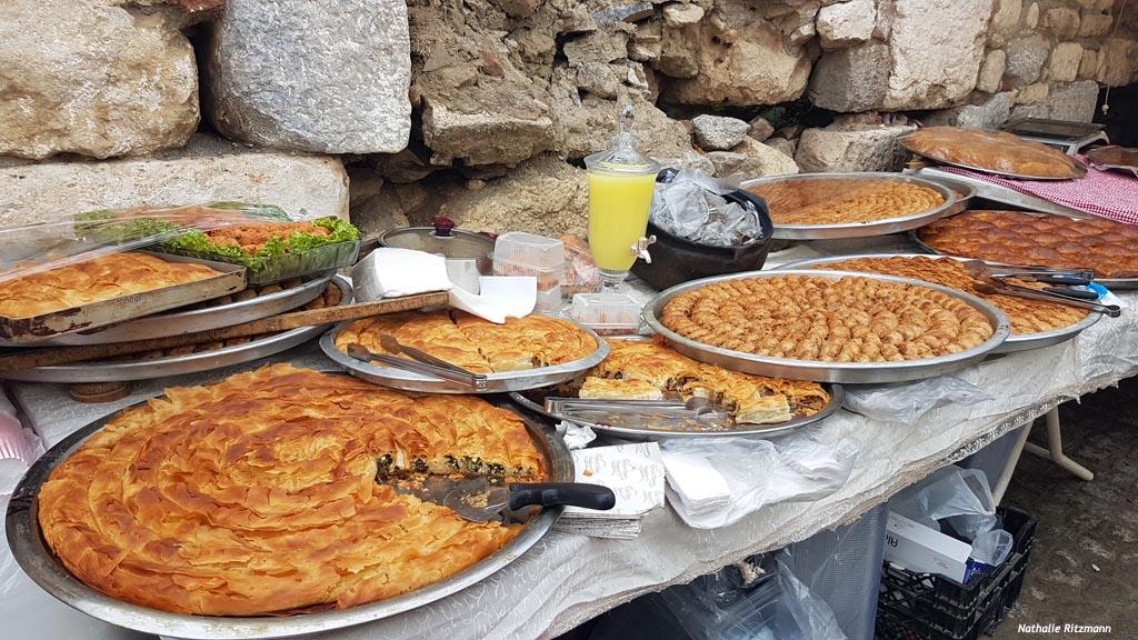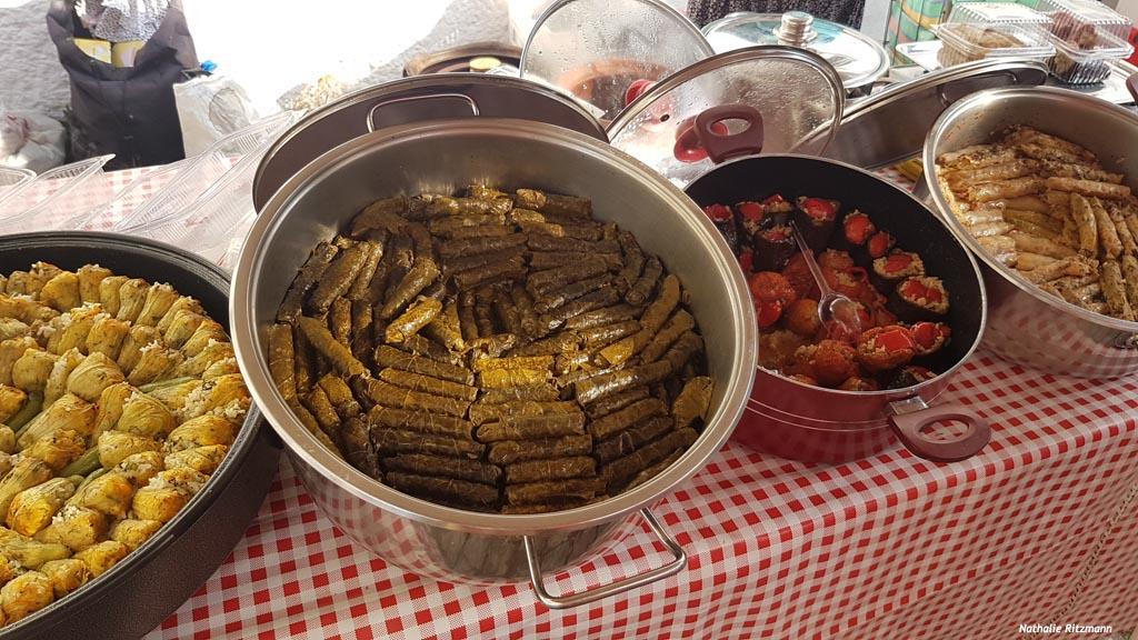 Les petites rues du centre historique sont, quant à elles, occupées par les riverains et des habitants de la région qui étalent leurs délices fait maison allant des fleurs de courgettes ou des feuilles de vignes farcies aux börek de toutes sortes en passant par quantité de douceurs variées et attirantes.