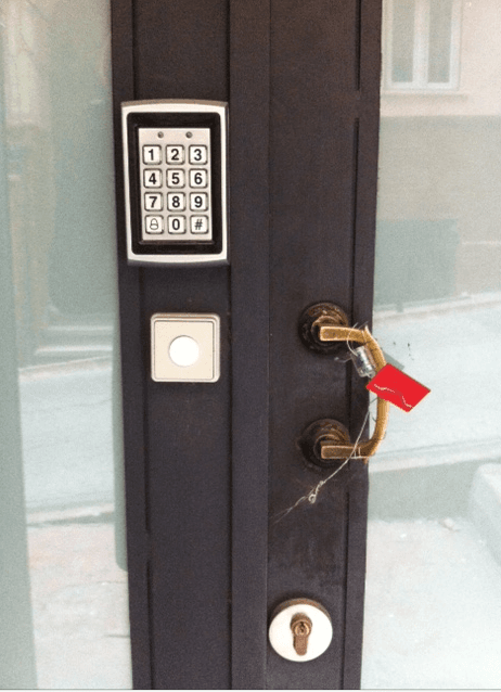 Porte d'un immeuble abritant des appartements pour touristes