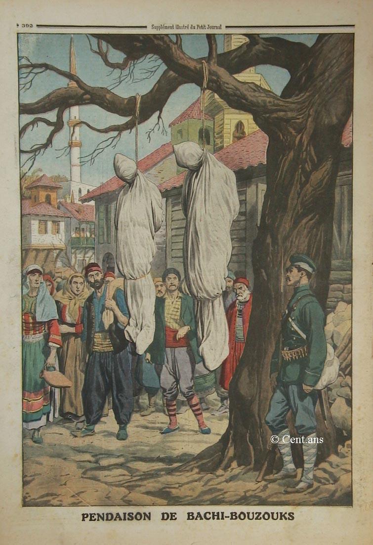 En 1876 a lieu, à Batak, l’insurrection d’Avril. Les bachi-bouzouks, soldats irréguliers de l’armée ottomane, se livrent à une répression meurtrière : 5.000 Bulgares auraient été massacrés. Plusieurs mercenaires turcs sont capturés par les troupes bulgares. Après un jugement expéditif, ils sont condamnés à mort et pendus aux arbres, dans des grands sacs de toile blanche.