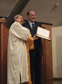 Comme l’a rappelé Füsun Türkmen dans son allocution, le titre de Dr Honoris Causa est décerné à des personnalités ayant rendu des services exceptionnels à leur nation ou à l’humanité. Le Dr Ethem Tolga, recteur de l’université, précise dans son discours, avant de remettre diplôme et toge, les facteurs qui ont conduit les "sages” de Galatasaray à décerner, à l’unanimité, ce titre à notre ancien Président.