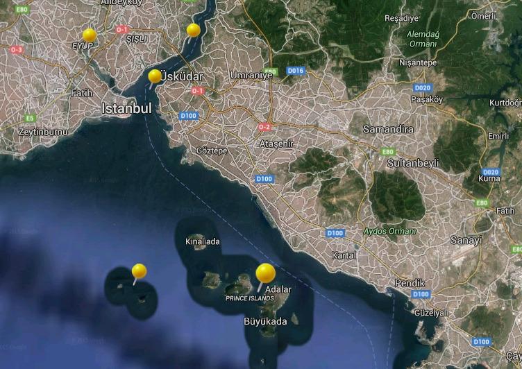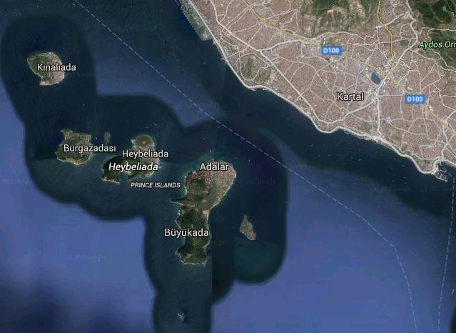 Sur la mer Marmara, à vingt kilomètres au sud-est d’Istanbul, impossible de manquer l’archipel des Princes, un chapelet de neuf îles, dont cinq sont habitées. District d’Istanbul à part entière, ces îles sont formées par Büyükada (Grande île), Heybeliada (île de la sacoche), Burgazada (île forteresse), Kınılıada (île du henné), Sedef Adası (île de la nacre), Yassıada (île plate), Sivriada (île pointue), Kaşık Adası (île de la cuillère) ainsi que Tavşan Adası (île aux lapins).