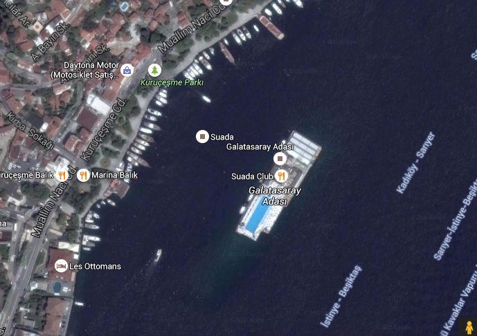 L’île de Suada, ou île de Galatasaray, se trouve dans le district de Kuruçeşme, sur la rive européenne, à quelques 165 mètres de la côte.