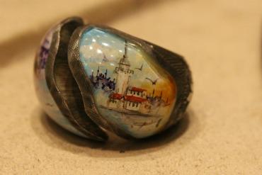 De Sainte-Sophie à la Tour de Galata en passant par la rive asiatique, ses pièces de joaillerie sont à l'effigie de la ville. Des peintures des lieux emblématiques d'Istanbul sont apposées sur chaque bague, collier, bracelet ou bouton de manchette.