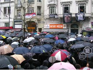 Les familles de victimes de meurtres politiques participaient à cette manifestation pour soutenir la famille de Hrant Dink, devenu le symbole de la lutte contre l’injustice. Ce journaliste d’origine turco-arménienne était pour la réconciliation de ces deux peuples. Il était célèbre pour ces critiques tant de la diaspora arménienne que de la position turque envers "l’histoire" arménienne. Il a été trois fois sous le coup de la loi 301 sur le "dénigrement de l’identité turque" et avait reçu plusieurs menaces de mort. Editeur en chef du journal Agos, il a été assassiné à Istanbul le 19 janvier 2007 par Ogün Samast, un adolescent nationaliste, âgé de 17 ans au moment des faits.