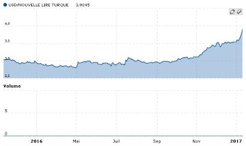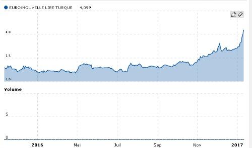 Les attentats à répétition en 2016, la tentative de coup d'Etat de juillet, le ralentissement de l'économie, l'extension de l'état d'urgence et l'incertitude politique liée à la volonté du président turc de réformer la Constitution pour renforcer ses pouvoirs exécutifs sont autant de facteurs qui, selon les experts, pénalisent la devise.