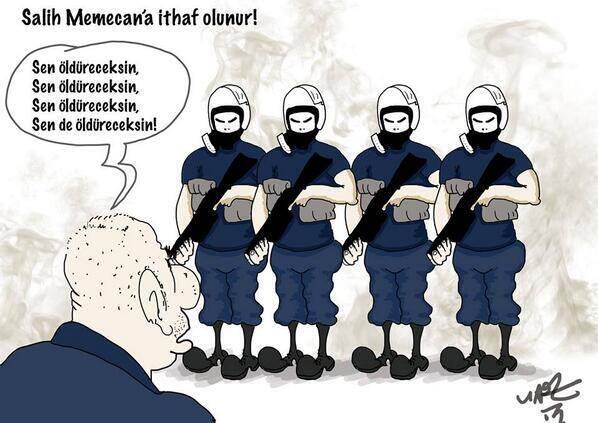 Mais la référence au jeune manifestant mort lui vaut cette fois les foudres des internautes. Les réactions ont été immédiates et des milliers de commentaires défilent sur la toile depuis mercredi, notamment en réponse à la dernière phrase “Toi, tu meurs”. Le frère d’Ethem Sarısülük a lui-même répondu au dessinateur. “Personne n’a donné à mon frère l’ordre de mourir. Nous censurons Salih Memecan, le caricaturiste du système”, a-t-il déclaré sur Twitter.